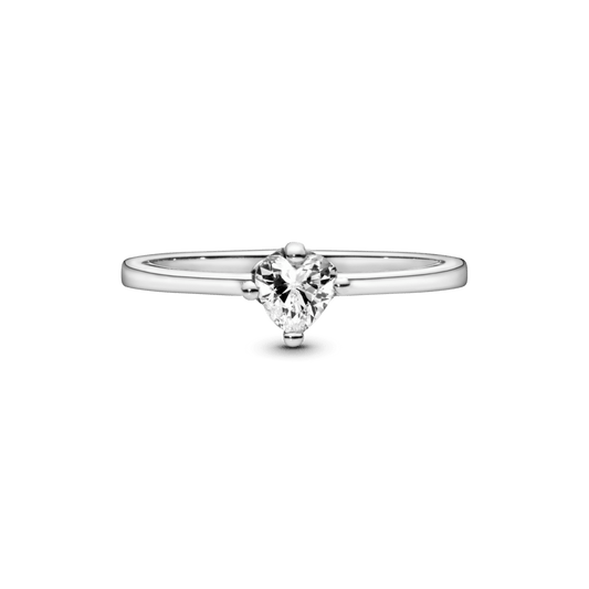Anel Solitário Prata Tipo Coração Brilhante - 198691C01
