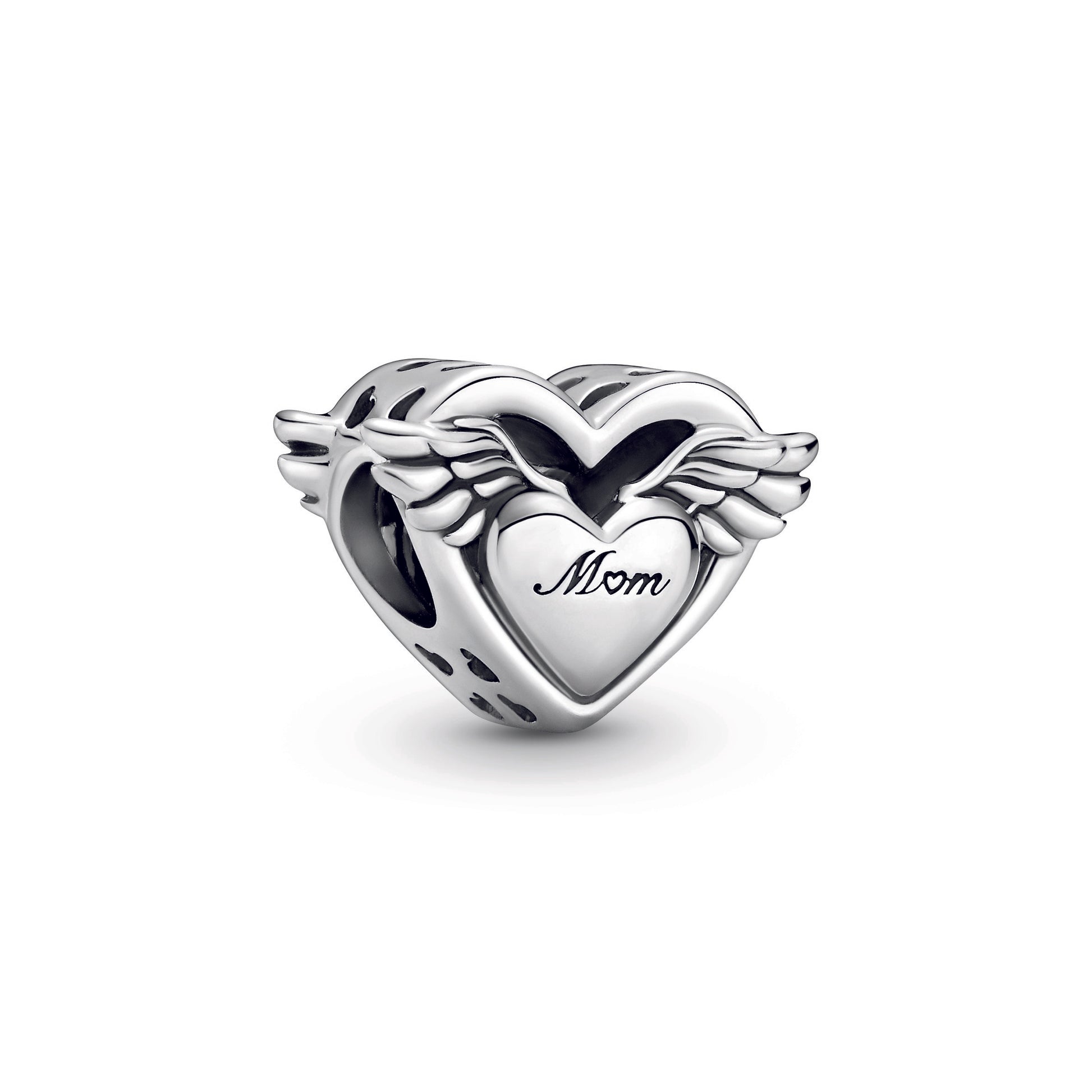 Mostre a ela que o seu amor não tem limites com o Charm Asas de Anjo e Mamãe. Com acabamento manual em prata de lei, este design simétrico em forma de coração com aberturas inclui asas de anjo que se estendem para fora, cruzando as bordas do pingente. Há um coração polido em relevo no centro, com a gravação “Mom” de um lado e “MyAngel” do outro. Corações recortados decoram as laterais da peça. Presenteie a sua mãe com este modelo para celebrar a sua conexão especial.