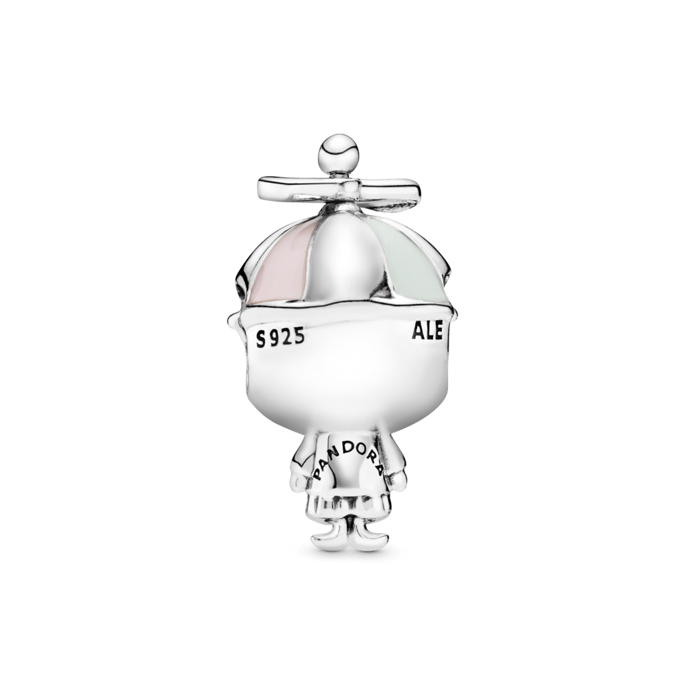 Adicione um charme de menino à sua pulseira com este Charm Menino Sapeca em prata esterlina. Com designe doce ele possui um boné de hélice giratória em esmalte em tons pastéis e tem o logo da Pandora em sua barriga. Ele é colocado em sua pulseira pela cabeça, deixando seu corpo balançar de forma divertida.