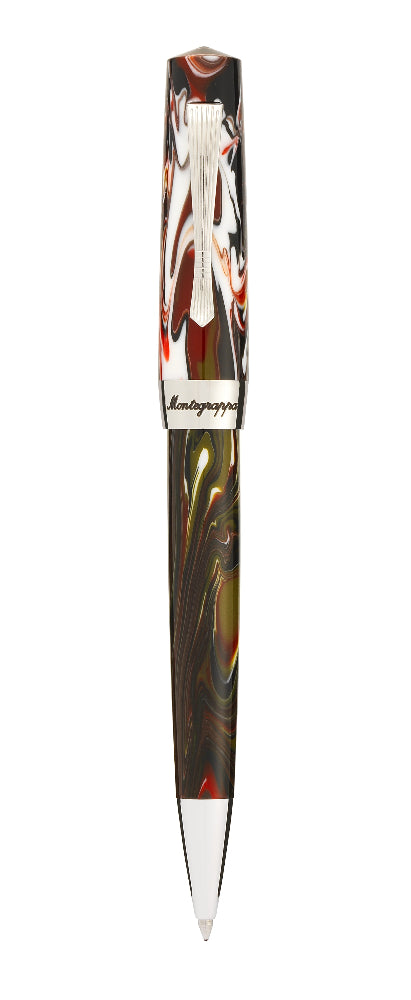 Caráter honesto e aparência elegante e esculpida eram marcas registradas de muitas das primeiras canetas Elmo usadas em escritórios e salas de aula por toda a Itália na década de 1920. Aqui, um design de arquivo do cofundador da fábrica, Heinrich "Elmo" Helm, fornece o modelo para uma silhueta que minimiza o uso de componentes metálicos sem sacrificar o toque decorativo. Um elegante clipe de faixa de cintura em latão é um lembrete da atemporalidade do grande design.