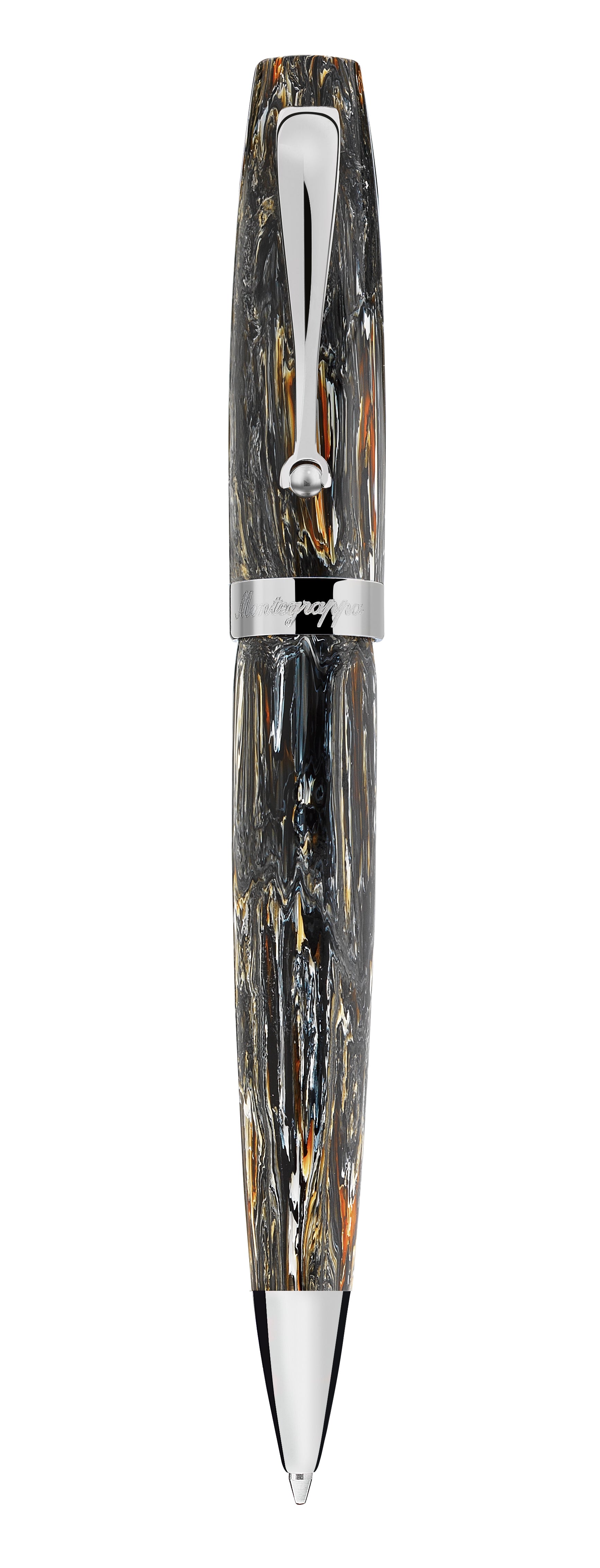 Não se deixe enganar pelo charme vintage e pelo seu valor atemporal. A caneta 'Mia' inspira-se no passado, mas sua perspectiva é totalmente moderna, ela foi projetada para funcionar 24 horas por dia, 7 dias por semana, e é esculpida em uma resina ecologicamente correta. Uma paleta de cores vibrantes a ajuda a se integrar em qualquer ambiente, é fácil de admirar e ainda mais fácil de amar, feita à mão em Bassano del Grappa: o berço da cultura literária italiana.