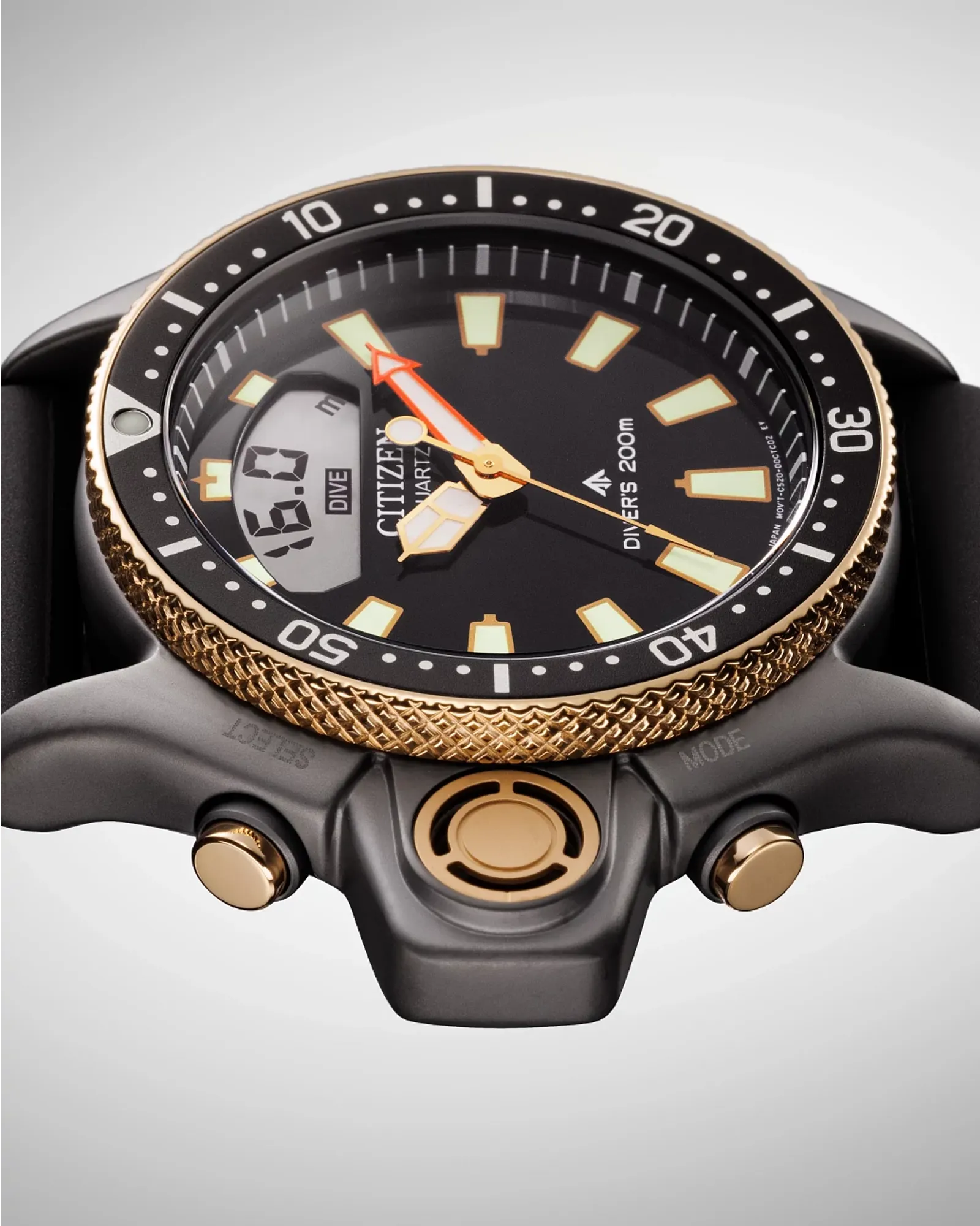 Preparar, Apontar, Mergulhar. Um nome icônico com uma construção híbrida reinventada: o novo Promaster Aqualand Quartz Edição Limitada de 40º Aniversário é um relógio com certificação ISO, pronto para a sua próxima aventura subaquática.
