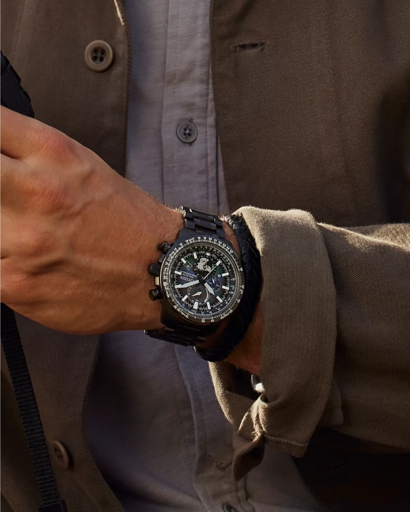 Há cem anos, a Citizen revolucionou a relojoaria com o lançamento de seu primeiro relógio de bolso. Hoje, esse legado continua com o Promaster Geo Trekker edição limitada. O modelo oferece cronometrista com controle de rádio global para precisão excepcional e mostrador inspirado nas camadas geológicas da crosta terrestre, produzido com materiais reciclados e tinta estrutural desenvolvida pela FUJIFILM Corp. Essa tinta inovadora cria uma variedade de cores e profundidade por reflexão da luz, em conjunto com a tecnologia Eco-Drive, que utiliza luz como fonte de energia sustentável, dispensando baterias.