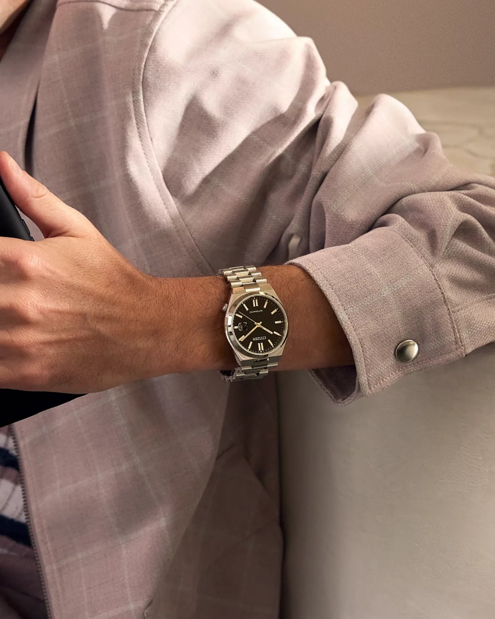 O relógio Tsuyosa Automatic, da série NJ015, traz um estilo esportivo ultramoderno diretamente para o seu pulso. Com caixa de 40mm em aço inoxidável prateado e pulseira integrada combinando, o design sofisticado garante presença marcante.
