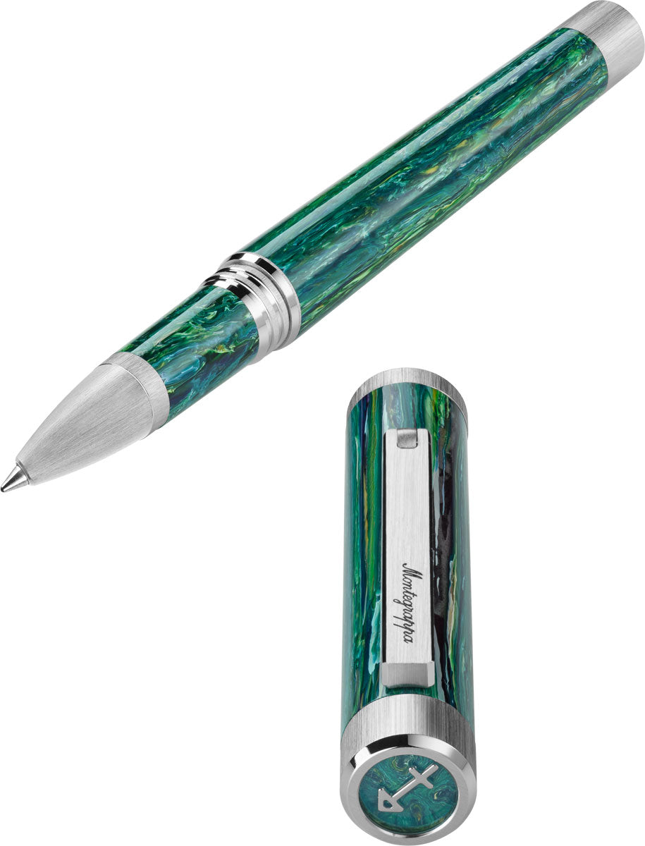 Fios de resina colorida representam os traços do seu signo, artesanalmente misturados em vibrantes constelações de Montegrappite. Protegidos por um cristal de safira, emblemas de metal maciço e design contemporâneo são a insígnia da sua identidade cósmica.